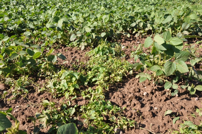 Si cela s’avère nécessaire, nous effectuons un traitement de rattrapage 1 mois plus tard. Ensuite, le soja couvre rapidement la surface du sol et étouffe lui-même les mauvaises herbes.